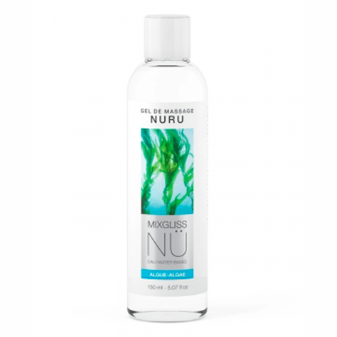 Gel de massage NÜ par Mixgliss pour découvrir le plaisir du massage Nuru.Le gel NÜ par Mixgliss est ultra glissant, à base d’eau, enrichi en algues. Bouteille de 150 ml.